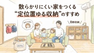 家がすぐ散らかる…と悩むママへ。定位置をゆるく決めるだけで家は整います。2児在宅ママの実体験から、家族全員が戻しやすい“ゆる定位置収納”のコツを紹介。