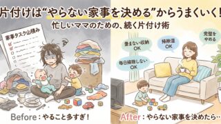 片付けが続かないのは、あなたのやる気の問題ではありません。家事を“減らす”ことで片付けがラクになる方法と、2児在宅ママの実体験から学んだ“やらない家事”の決め方を紹介します。
