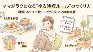 忙しいママのための“ゆる時短ルール”の作り方を紹介。頑張らなくても続く時短習慣を、2児在宅ママの実体験とともにわかりやすくまとめました。
