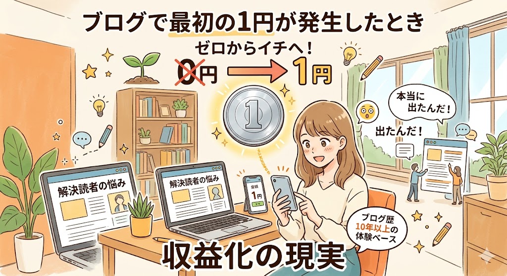 ブログを始めると、多くの人が気になるのが「いつ最初の収益が出るのか」ということではないでしょうか。アクセスが少ない時期が続くと、本当にお金につながる日が来るのか不安になります。私自身も、最初の1円が発生するまでは半信半疑でした。ですが、実際に小さな金額でも収益が動いたとき、単にうれしいだけではなく、いろいろな感情がありました。この記事では、最初の1円が発生したときに感じたことと、その後のブログ運営で大切だと気づいたことを体験ベースでお伝えします。