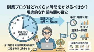 副業ブログは1日何時間必要?忙しくても成果は出せる?ブログ歴10年以上の筆者が、月1万円を目指すための現実的な作業時間と続け方を解説します。