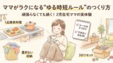 これらのワザを取り入れることで、時間の流れがスムーズになり、「あっ、もう終わってる!」という瞬間が増えていきます。特に小さな子どもがいる家庭では、短いスキマ時間を活かすことができるため、時間のゆとりにもつながります。